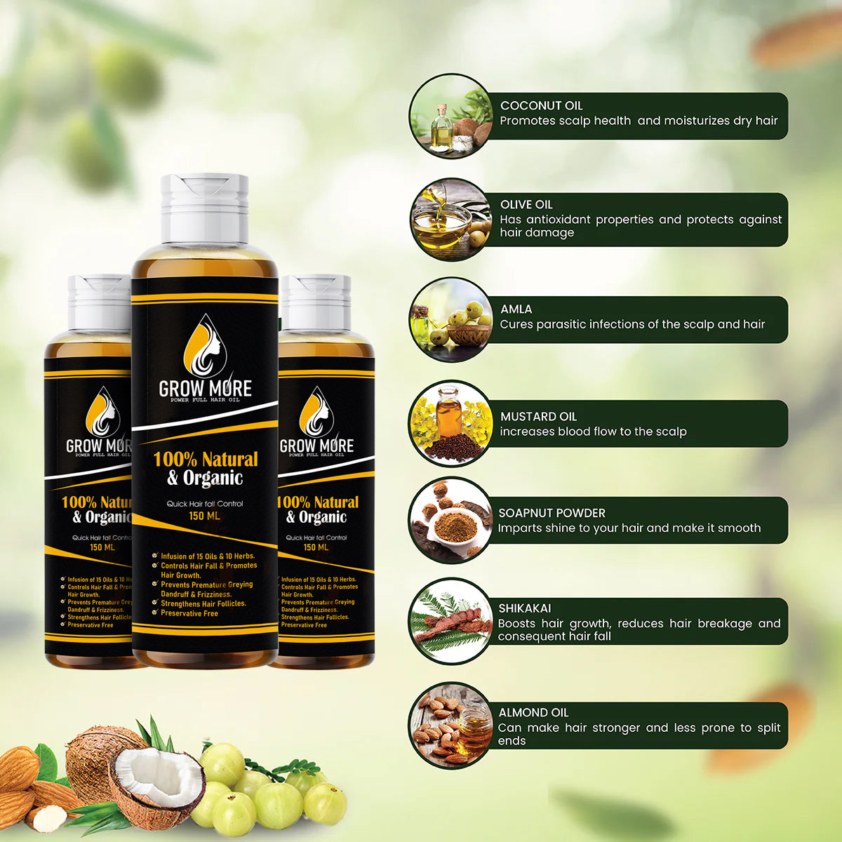 Grow More – 100% Natural & Organic Hair Oil